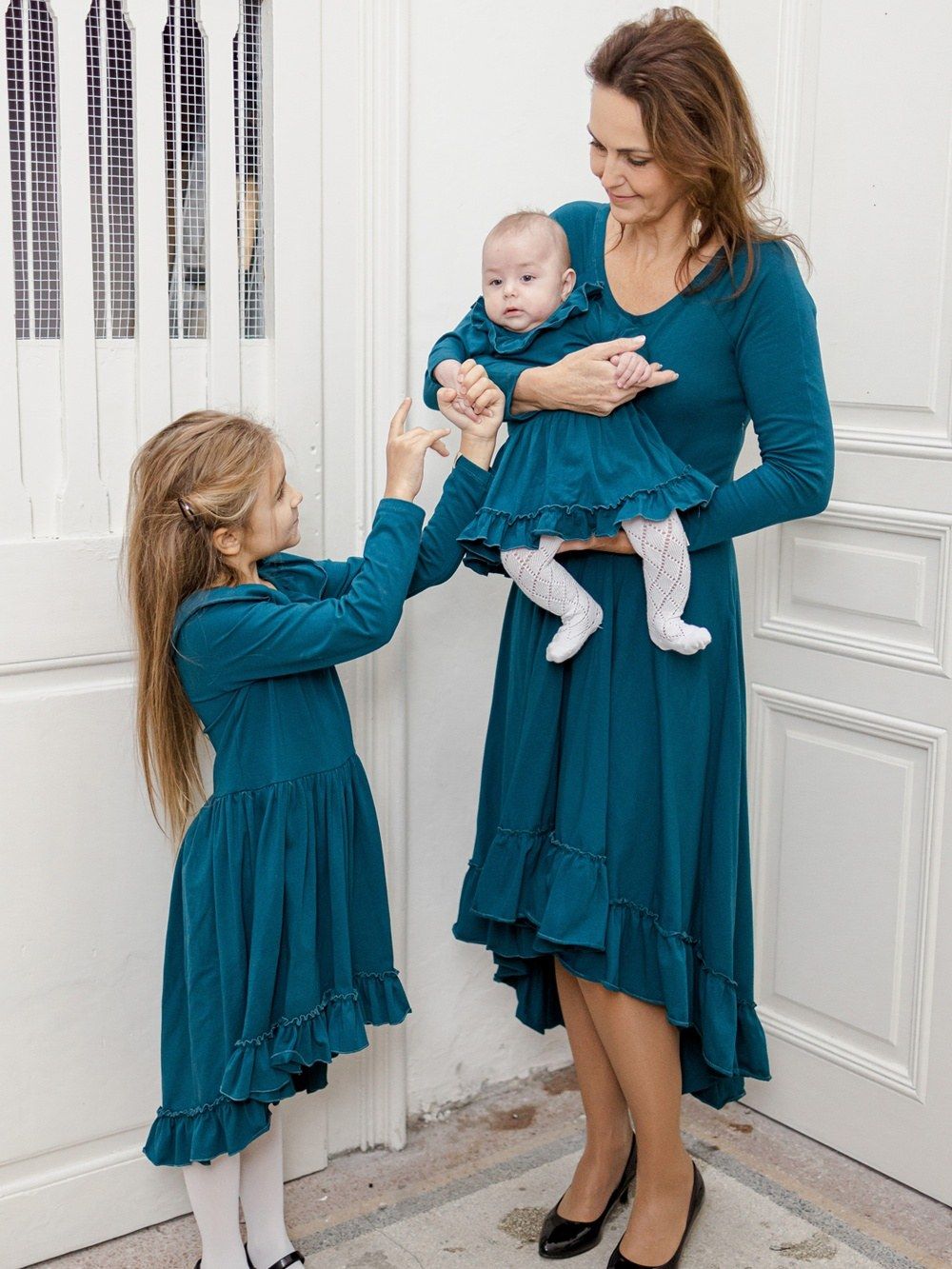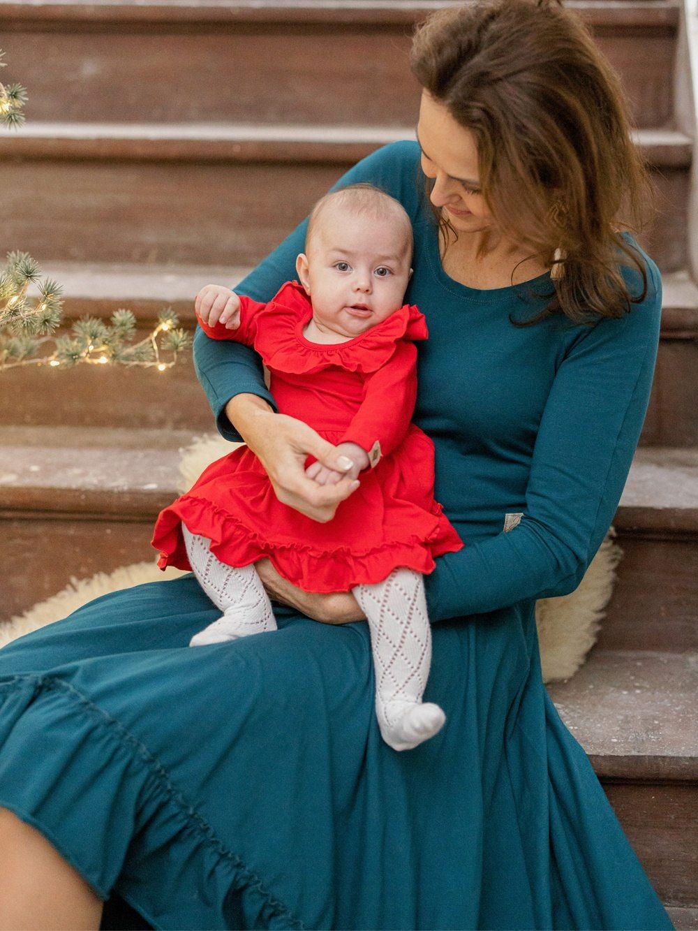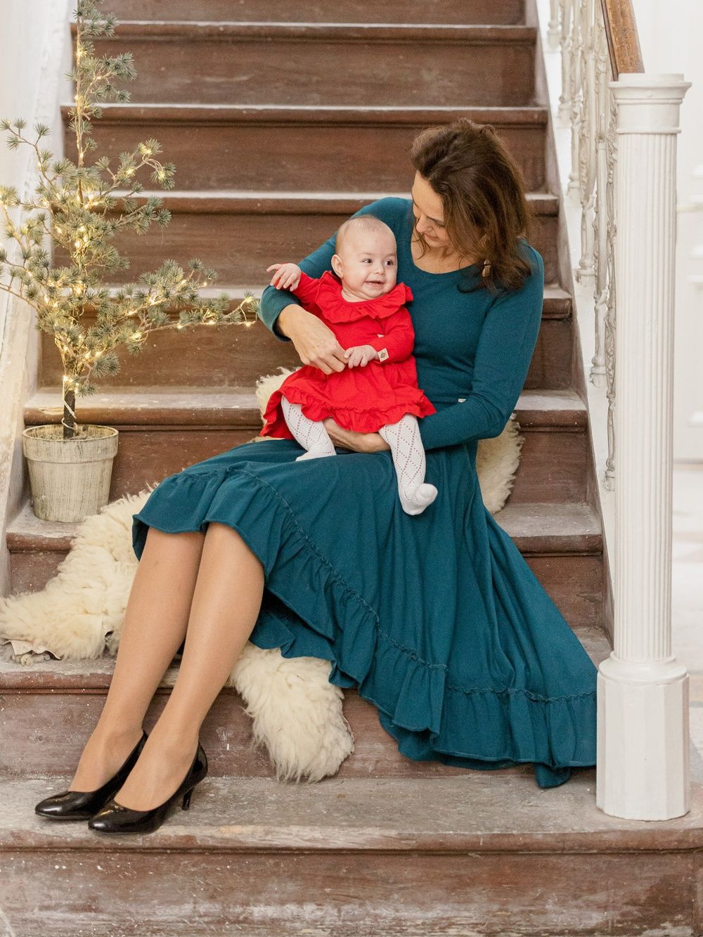 Šaty jsou ušity z pohodlné bavlněné látky. Příjemný a elegantní střih z nich dělá šaty na rodinné oslavy nebo vánoční firemní večírek. Využijete i na vánoční focení nebo při vánočních návštěvách i rodinném focení.