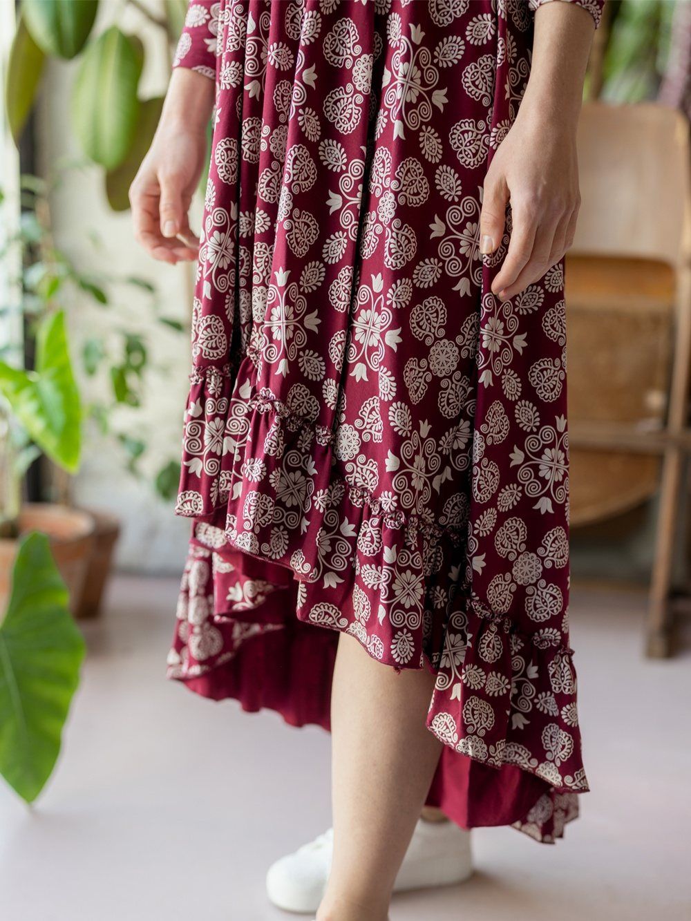Elegantní šaty s folklorním vzorem v moderním stylu? A proč ne! Stačí zvolit ty správné doplňky - bílé tenisky, džínovou bundu, crossbody kabelku. Vynikněte v davu při procházce městem nebo na kávě s kamarádkou :)