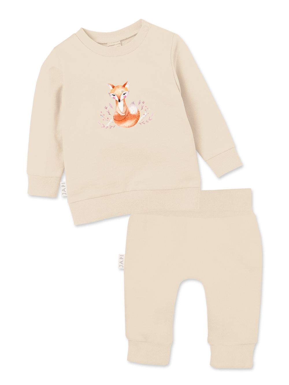 Tato hebká dětská souprava s motivem lišky se skládá z mikiny a pohodlných kalhot, které jsou ideální pro každodenní nošení. Vyrobena z jemné a prodyšné bavlny, zajišťuje maximální pohodlí po celý den. Mikina má praktické zapínání na rameni, což usnadňuje oblékání a svlékání. Kalhoty s elastickým pasem a zakončené pružnými lemy dobře sedí a neomezují pohyb dítěte. Roztomilý potisk sedící lišky dodává soupravě přírodní a hravý nádech, který si děti zamilují. Béžová a růžová barva umožňují snadné kombinování se zbytkem šatníku. Tato souprava je praktickou a stylovou volbou na doma, do kočárku i na procházky.