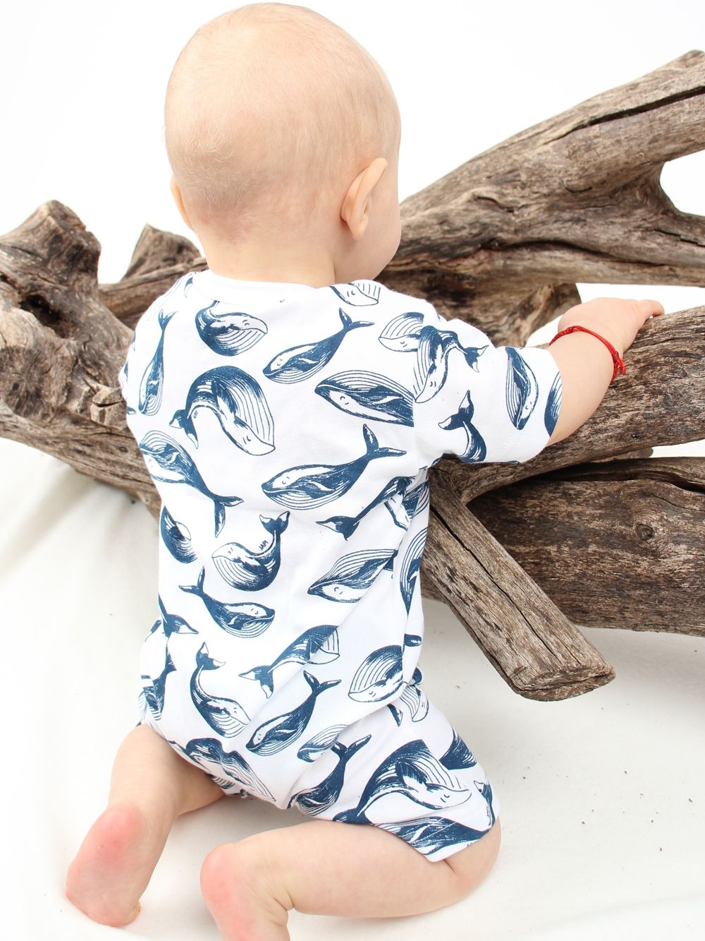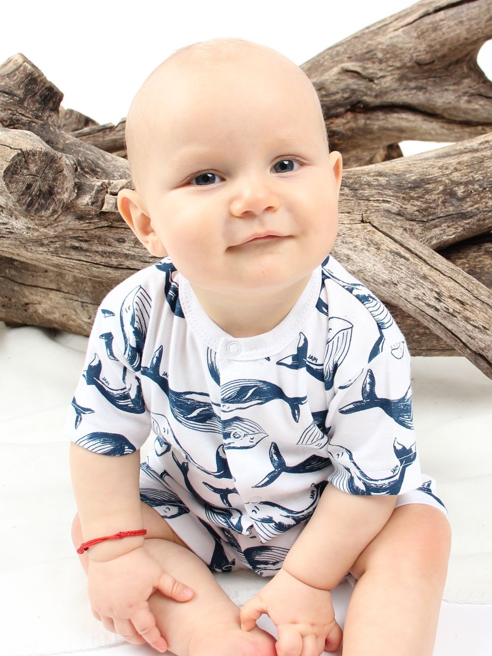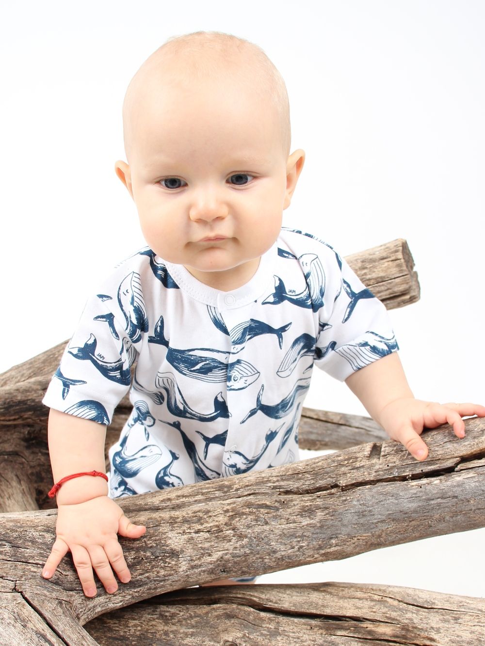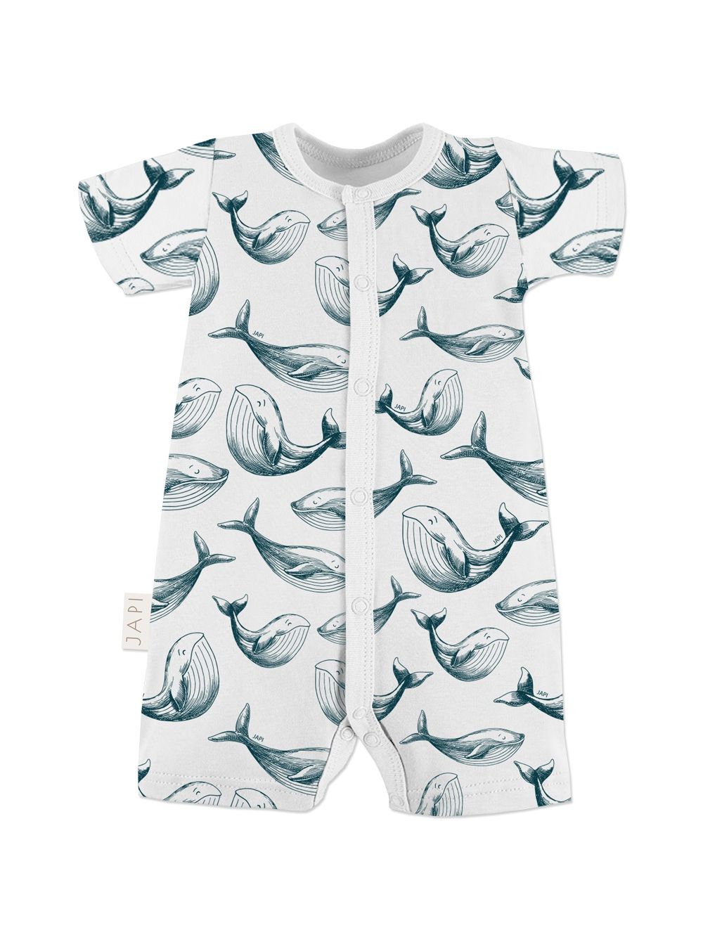 Letní overal s velrybami WHALES Opařovačky z kolekce WHALES poskytují dětskému tělu maximální pohodlí a svobodu pohybu. Kvalitní bavlněný materiál je prodyšný a měkký na dotek. Design s velrybami přináší šarm a roztomilost do dětského šatníku. Patentky usnadňují přebalování a oblékání.