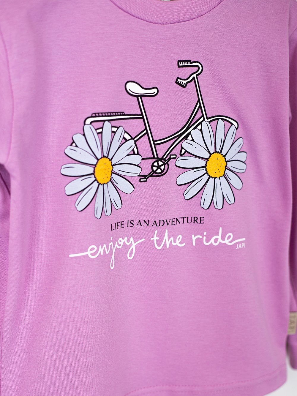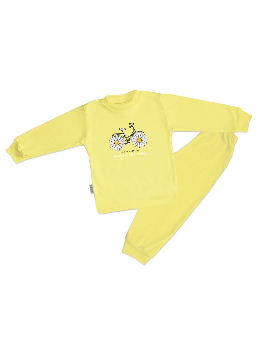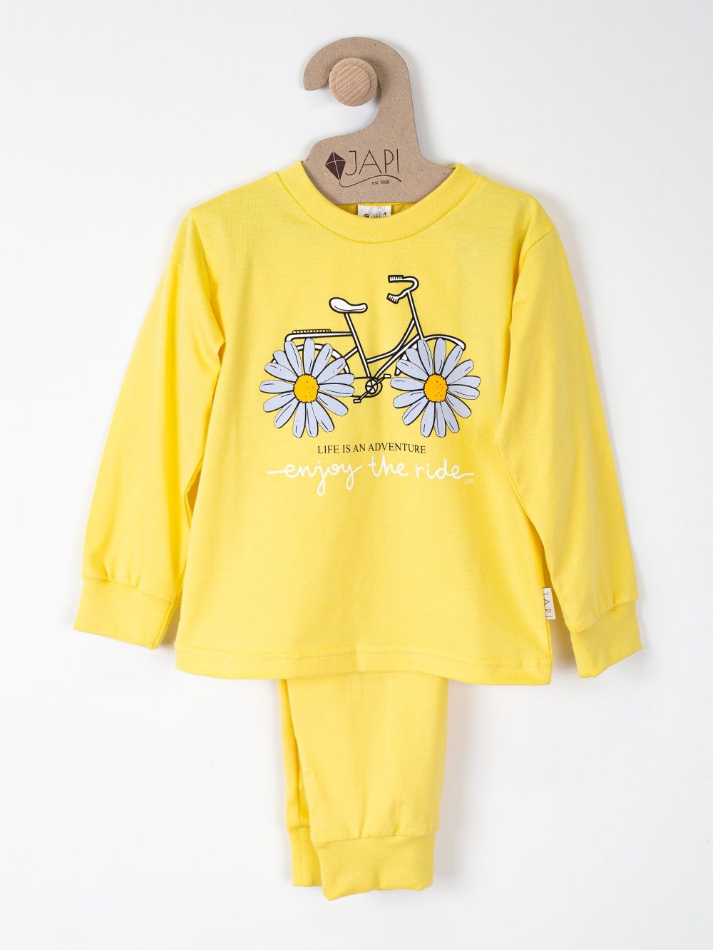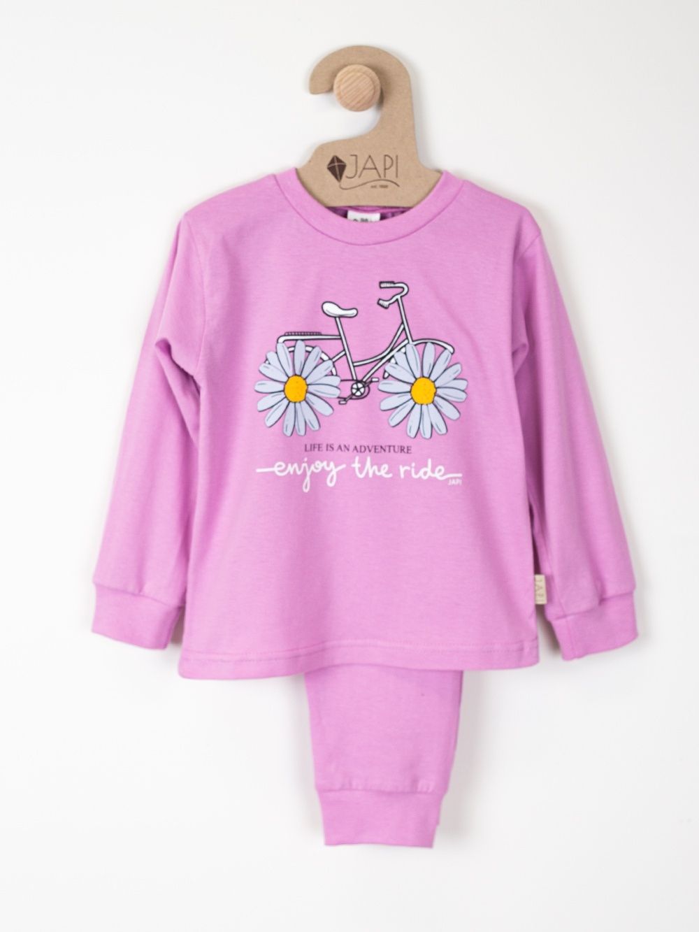 Toto roztomilé dětské pyžamo je ideální pro každé dítě, které miluje barvy a zábavu. Vyrobeno z měkkého a pohodlného materiálu, poskytuje maximální komfort během spánku. Na vrchní části pyžama se nachází veselý obrázek kola s kopretinami místo kol a nápisem "Enjoy the ride". Dostupné ve čtyřech atraktivních barvách: fialová, růžová, tyrkysová a žlutá, toto pyžamo je perfektní volbou pro každou malou princeznu.
