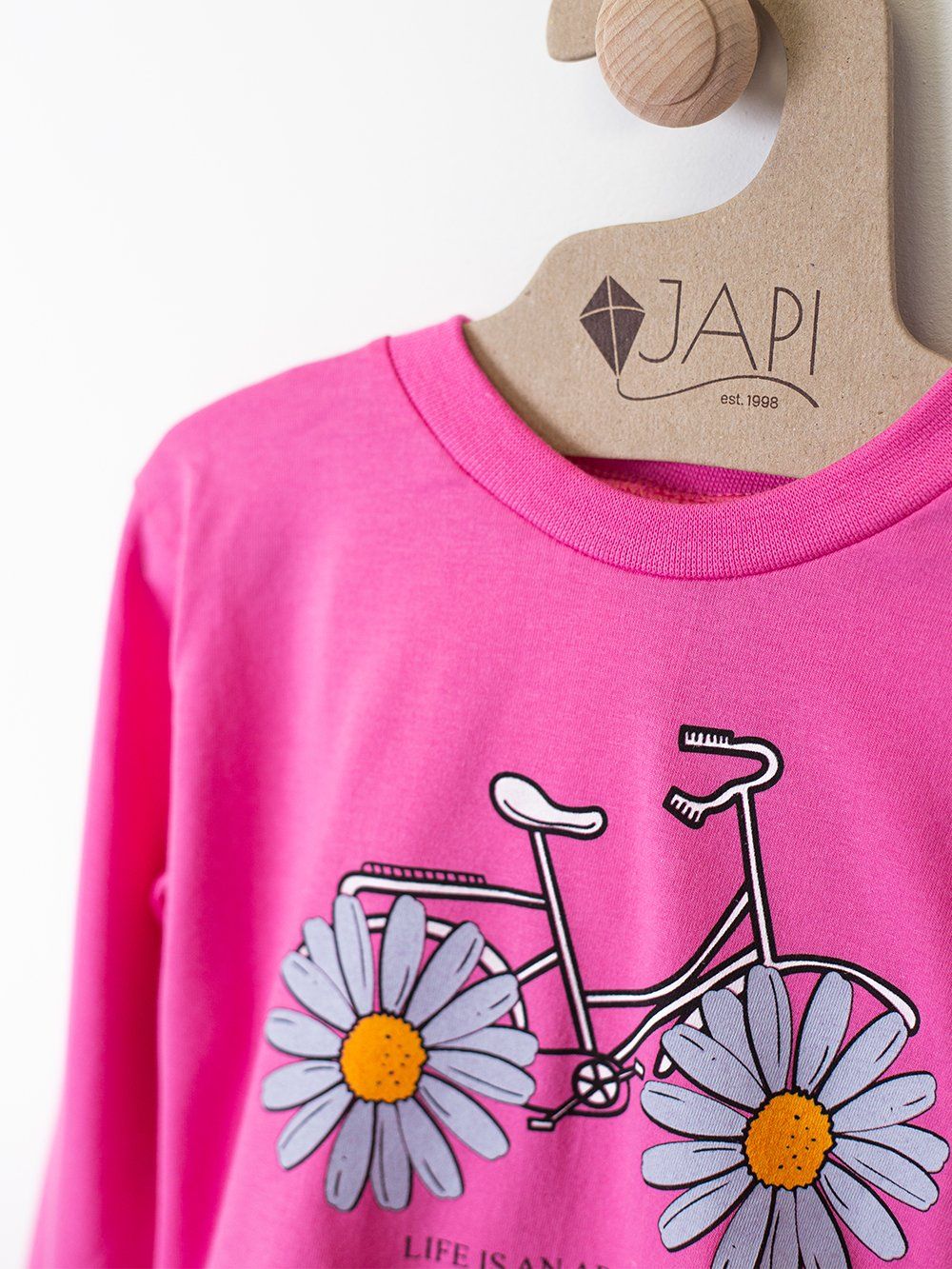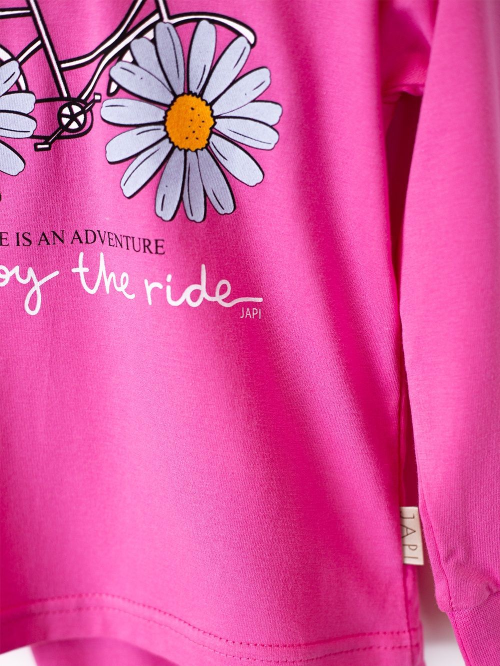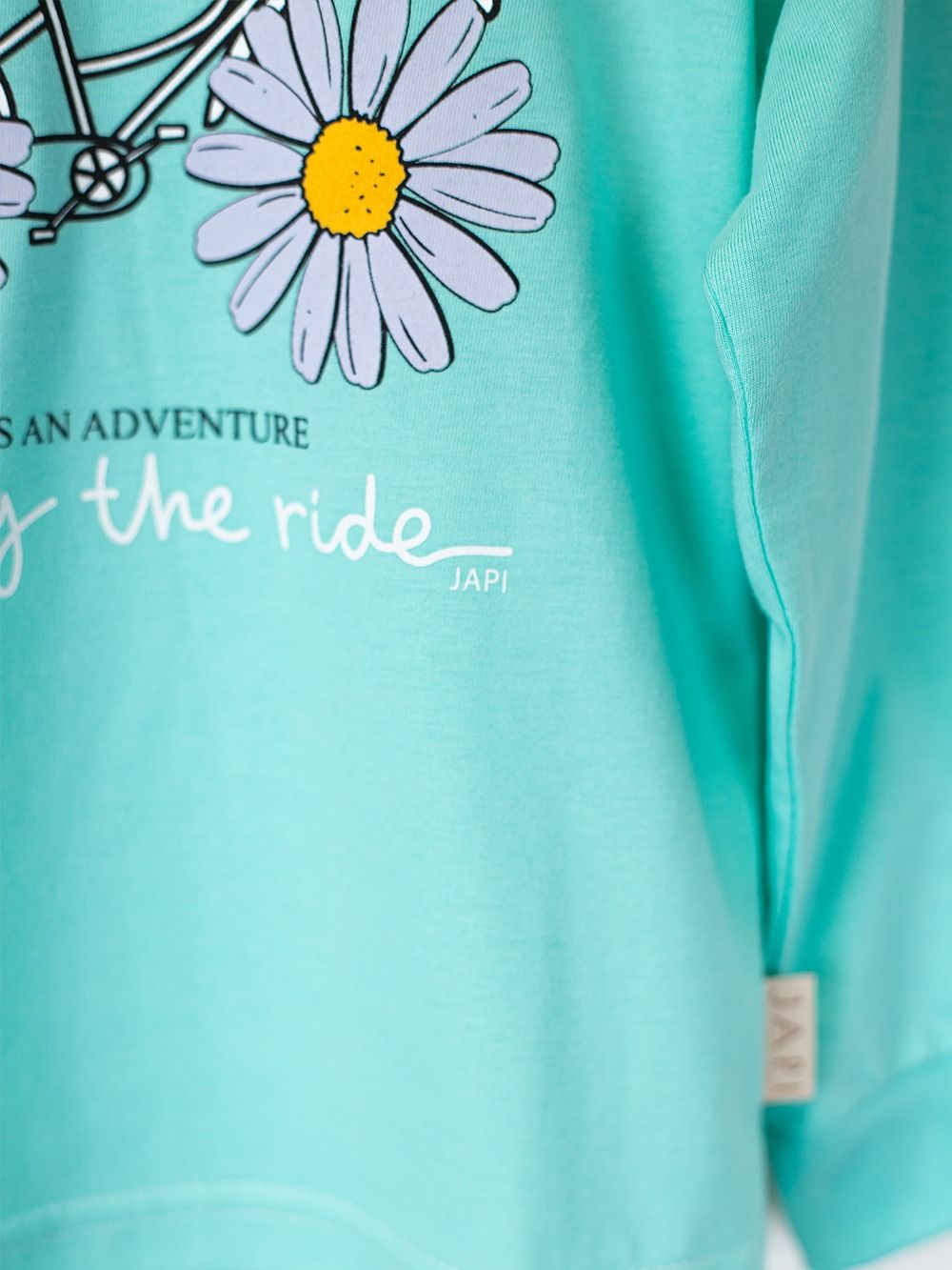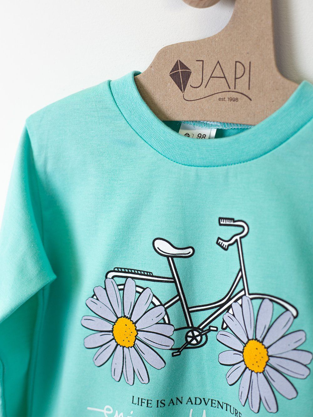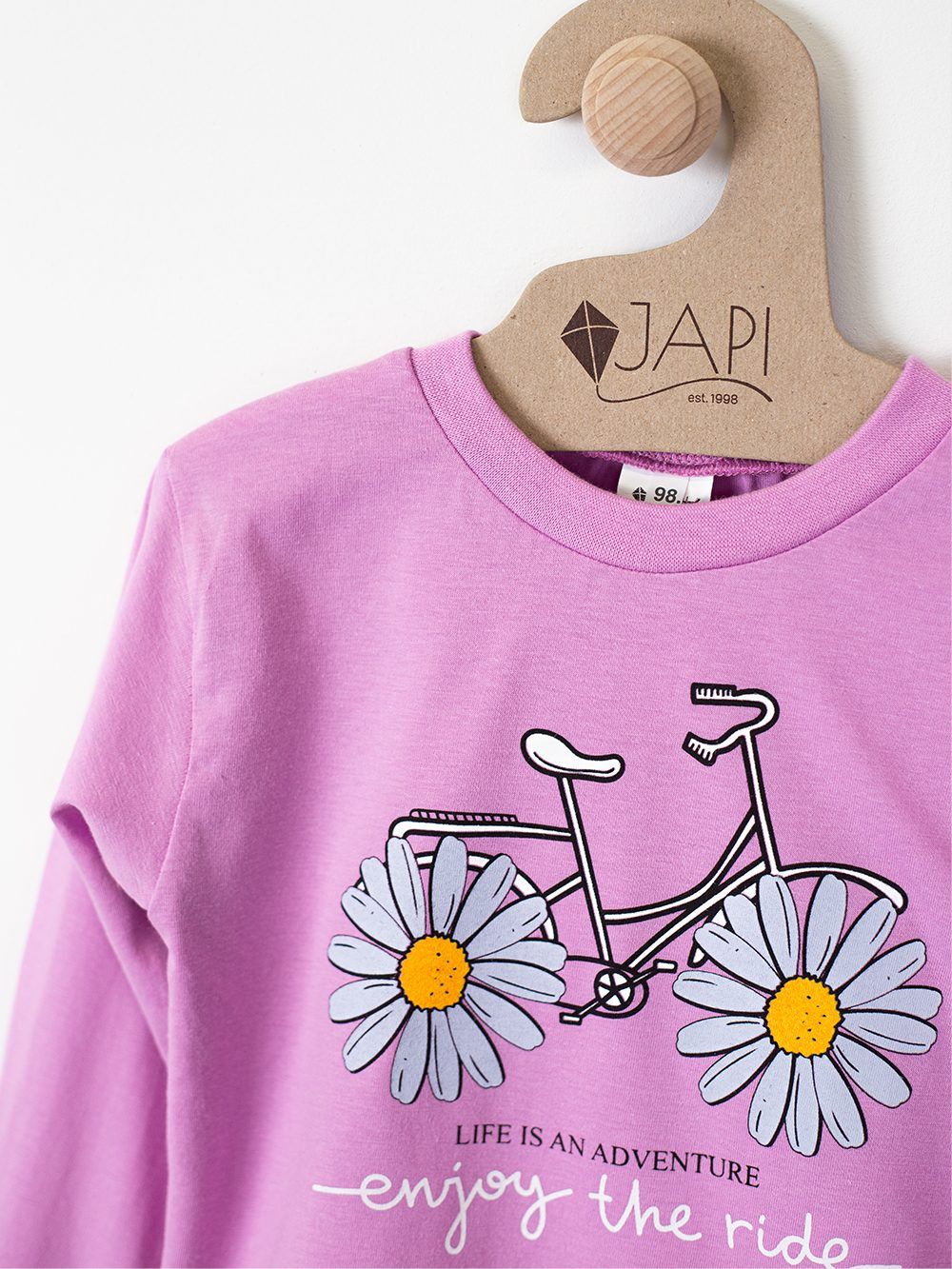 Toto roztomilé dětské pyžamo je ideální pro každé dítě, které miluje barvy a zábavu. Vyrobeno z měkkého a pohodlného materiálu, poskytuje maximální komfort během spánku. Na vrchní části pyžama se nachází veselý obrázek kola s kopretinami místo kol a nápisem "Enjoy the ride". Dostupné ve čtyřech atraktivních barvách: fialová, růžová, tyrkysová a žlutá, toto pyžamo je perfektní volbou pro každou malou princeznu.