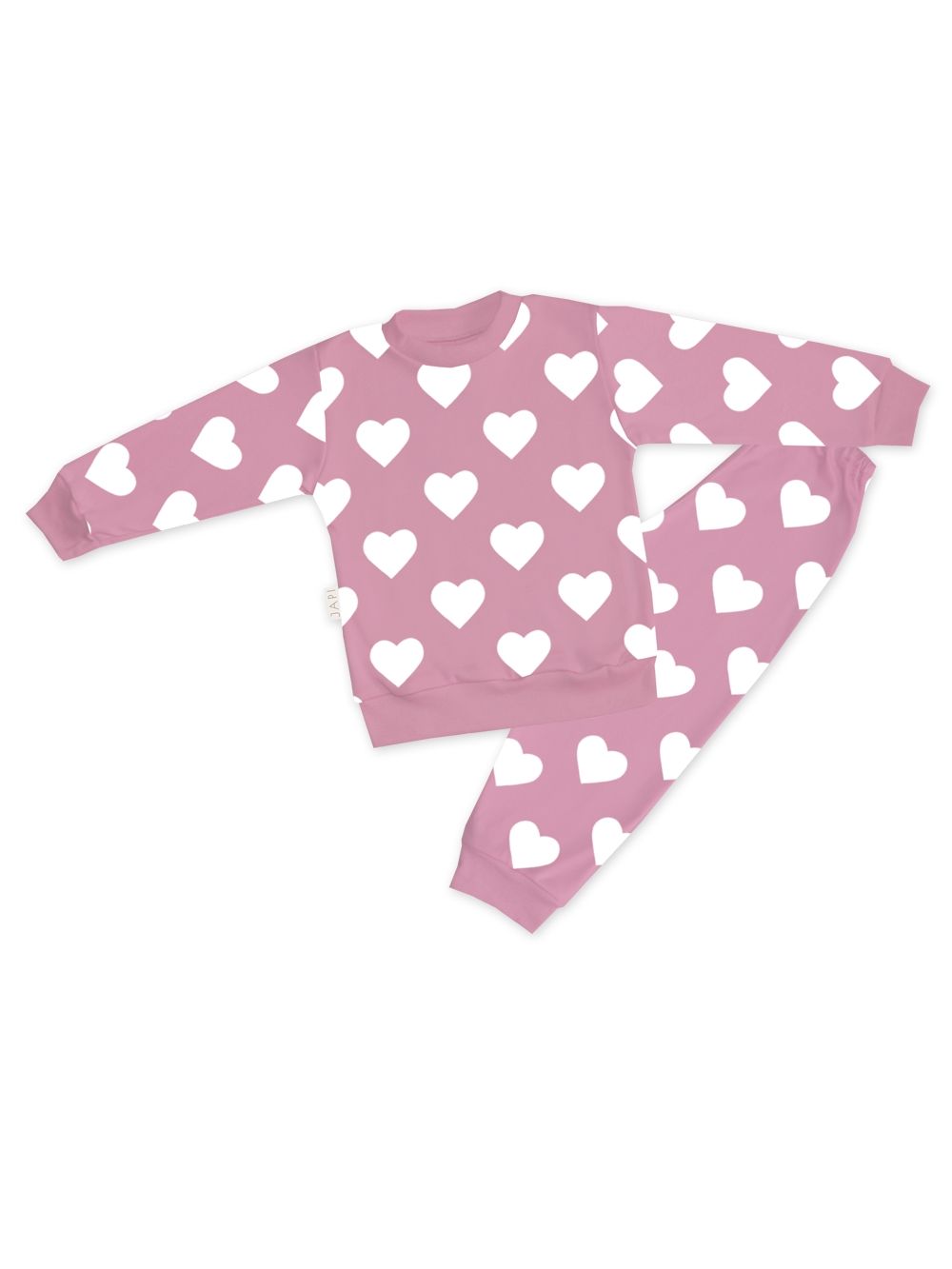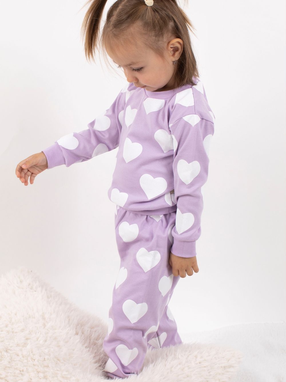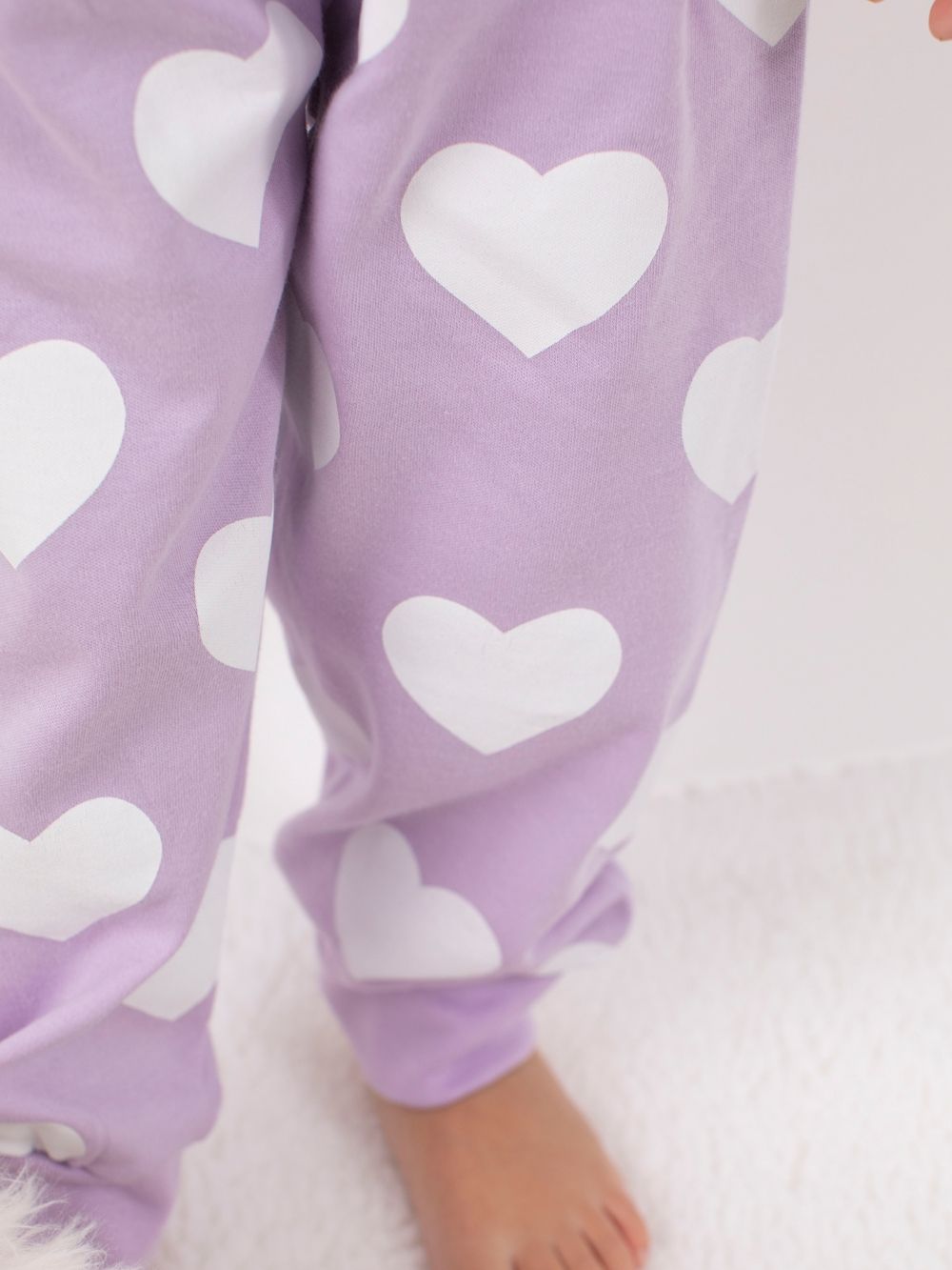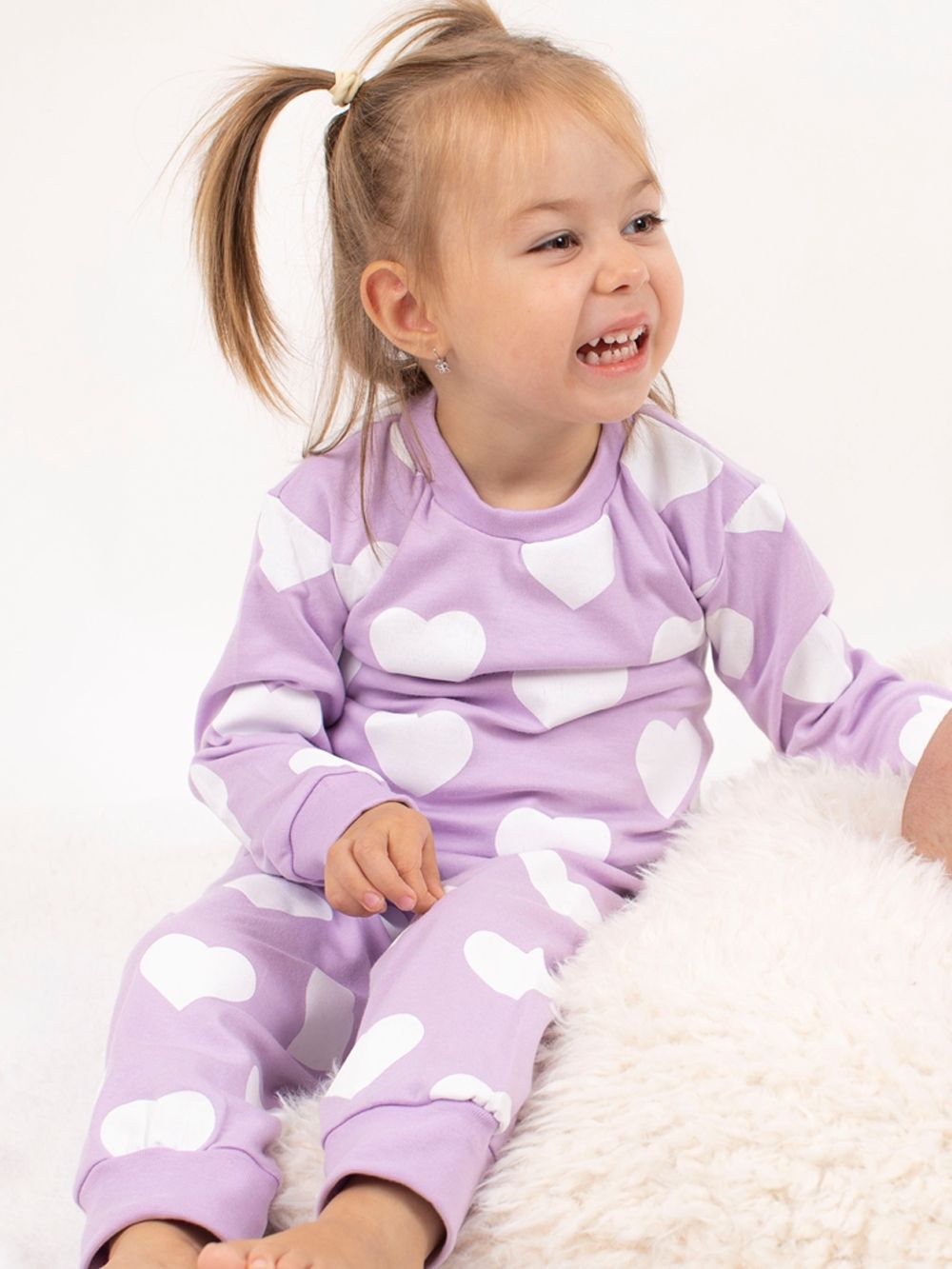 Dětské pyžamo s roztomilým vzorem srdíček je perfektní pro pohodlný spánek. Vyrobené z měkkého a prodyšného materiálu, poskytuje maximální pohodlí. Dlouhé rukávy a nohavice zajišťují teplo po celou noc.
