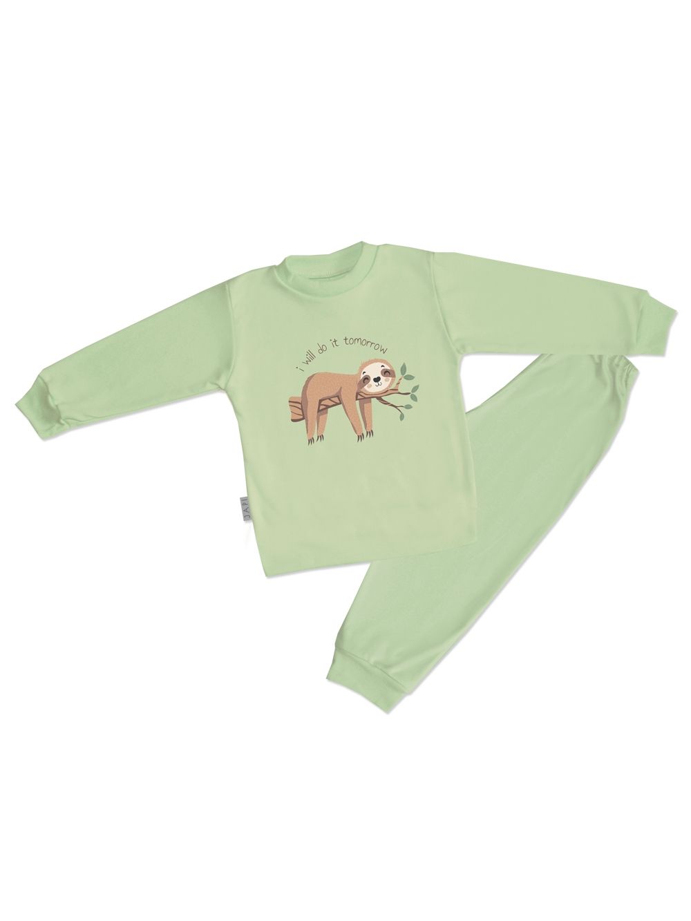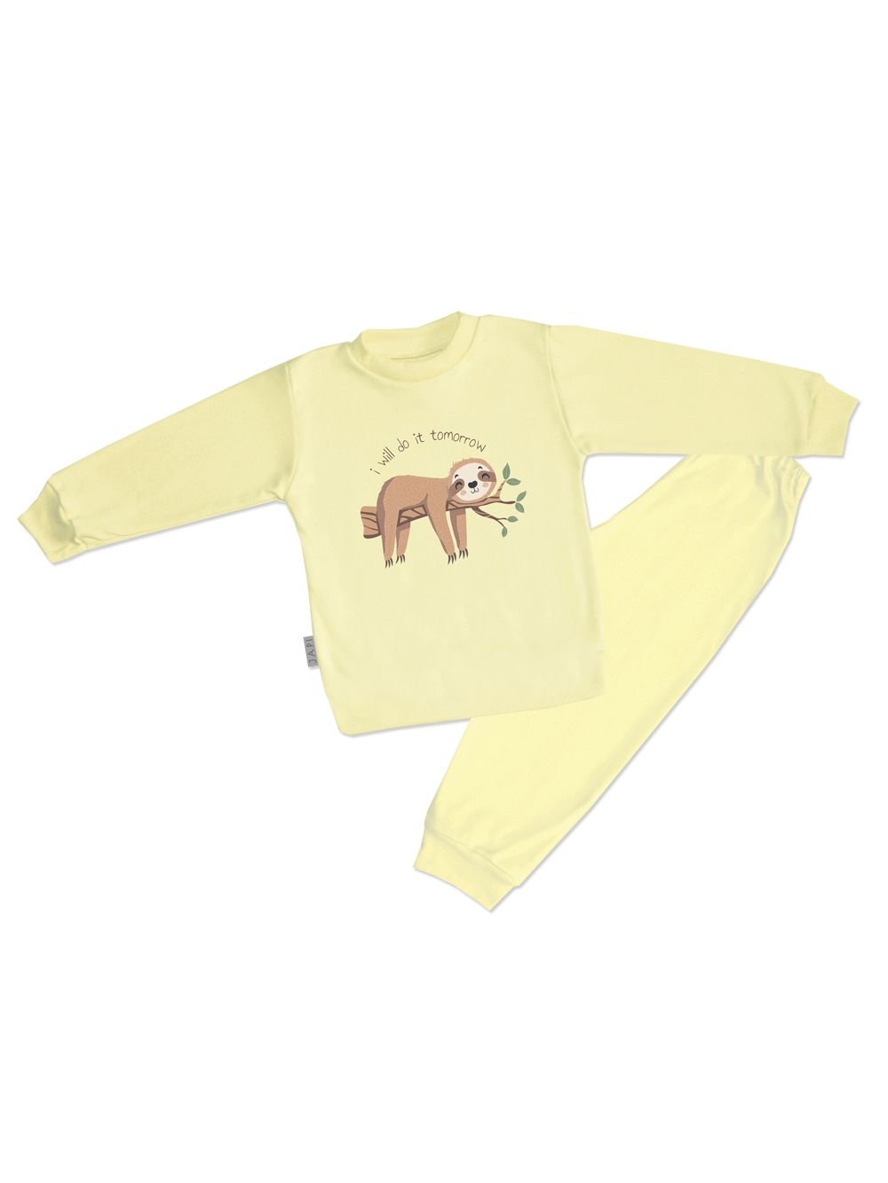 Veselé dětské pyžamo s motivem lenochoda TOMORROW je ideálním kouskem pro děti, které milují pohodlí a humor. Horní díl zdobí roztomilý obrázek lenochoda s nápisem „I will do it tomorrow“. Pyžamo je vyrobeno z kvalitní bavlny, která je příjemná na dotek, prodyšná a šetrná k dětské pokožce. K dispozici je ve čtyřech barvách – růžové, žluté, modré a zelené, aby každé dítě našlo svůj oblíbený odstín. Jednobarevné kalhoty s elastickým pasem zajišťují pohodlné nošení během celé noci. Dětské pyžamo má dlouhé rukávy i nohavice, a proto je vhodné i do chladnějšího počasí. Praktická a zábavná volba pro každé večery.