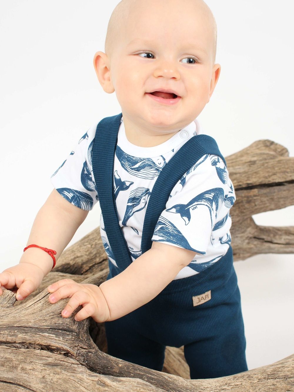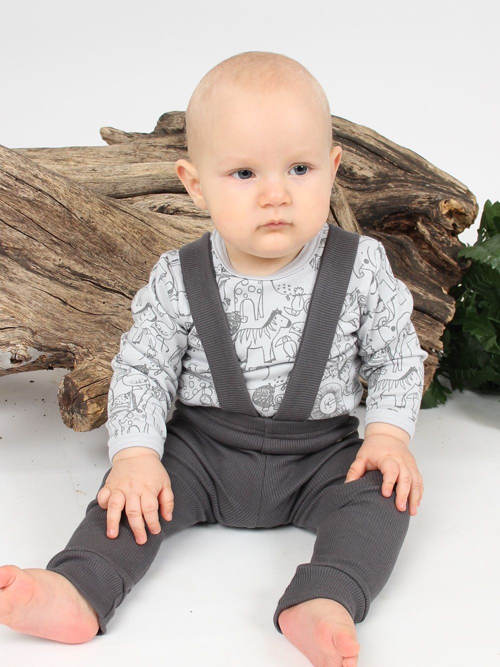 Tyto dětské žebrované tepláky na šle jsou dokonalou kombinací pohodlí a stylu. Vyrobené z příjemného a elastického materiálu, který zajišťuje volnost pohybu a komfort při celodenním nošení. Nastavitelné šle zajišťují, že kalhoty perfektně sedí a nesklouzávají během aktivní hry. Žebrovaná struktura dodává moderní vzhled a stylový nádech. Neutrální barvy a minimalistický design umožňují snadné kombinování s jinými kousky oblečení. Ideální pro každodenní nošení, ať už doma, na procházky nebo rodinná setkání.