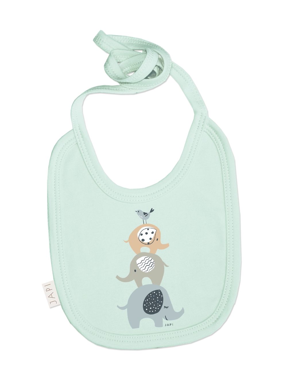 Dětský bryndák z bavlny je praktickým doplňkem pro každé miminko. Absorpční materiál chrání oblečení před ušpiněním a měkká bavlna je šetrná k pokožce. Roztomilý vzor se sloníky dodává jedinečný vzhled.