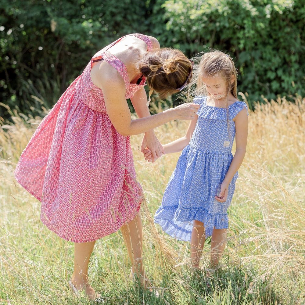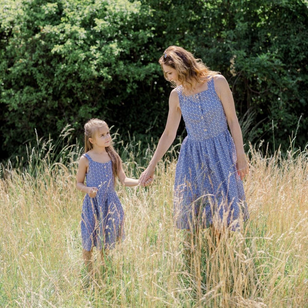 Zdravě opálenou pokožku můžete vystavit obdivu při večerní procházce městem i díky šatům na ramínka z kolekce Meadow. Sladěná máma s dcerkou.