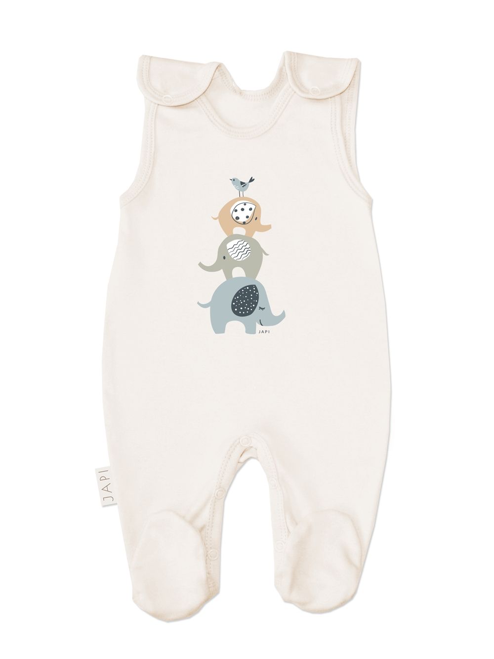 Kojenecké dupačky jsou vyrobeny z měkkého a pohodlného materiálu, který udrží vaše miminko v teple. Praktické zapínání na ramínkách a mezi nožičkami zajišťuje snadné převlékání. Neutrální pastelové odstíny a roztomilý motiv sloníků jsou ideální pro chlapce i dívky.