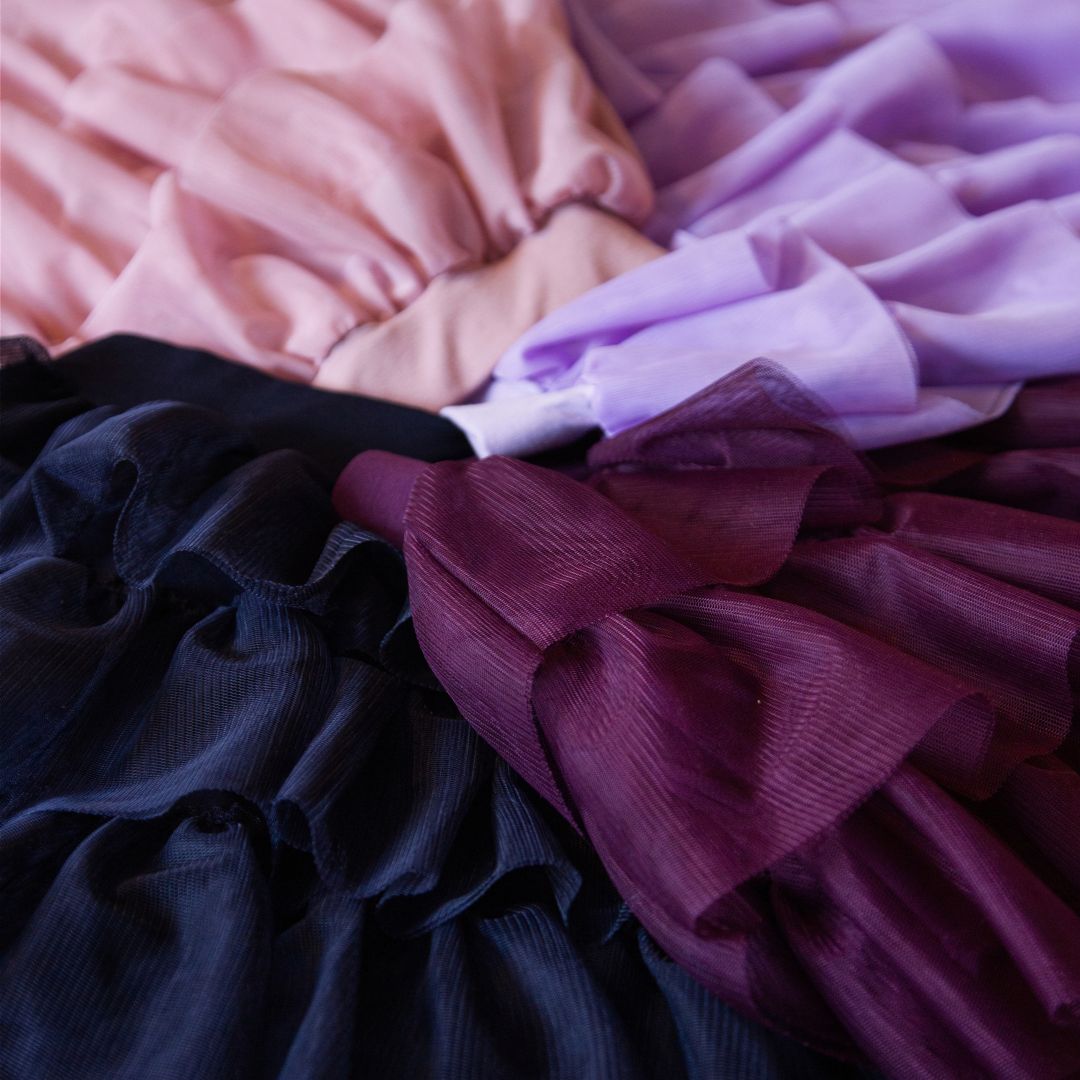 Vybrali jsme krásné barvy, které jistě oceníte. V této kolekci naleznete tylové sukně ve čtyřech barvách. Tmavě modrou, růžovou, tmavě fialovou a světle fialovou. Sukýnky mají elastický širší pas, který z nich činí pohodlný kousek. Doplnit je můžete jednobarevným tričkem z naší kolekce a vytvořit ladící komplet.
